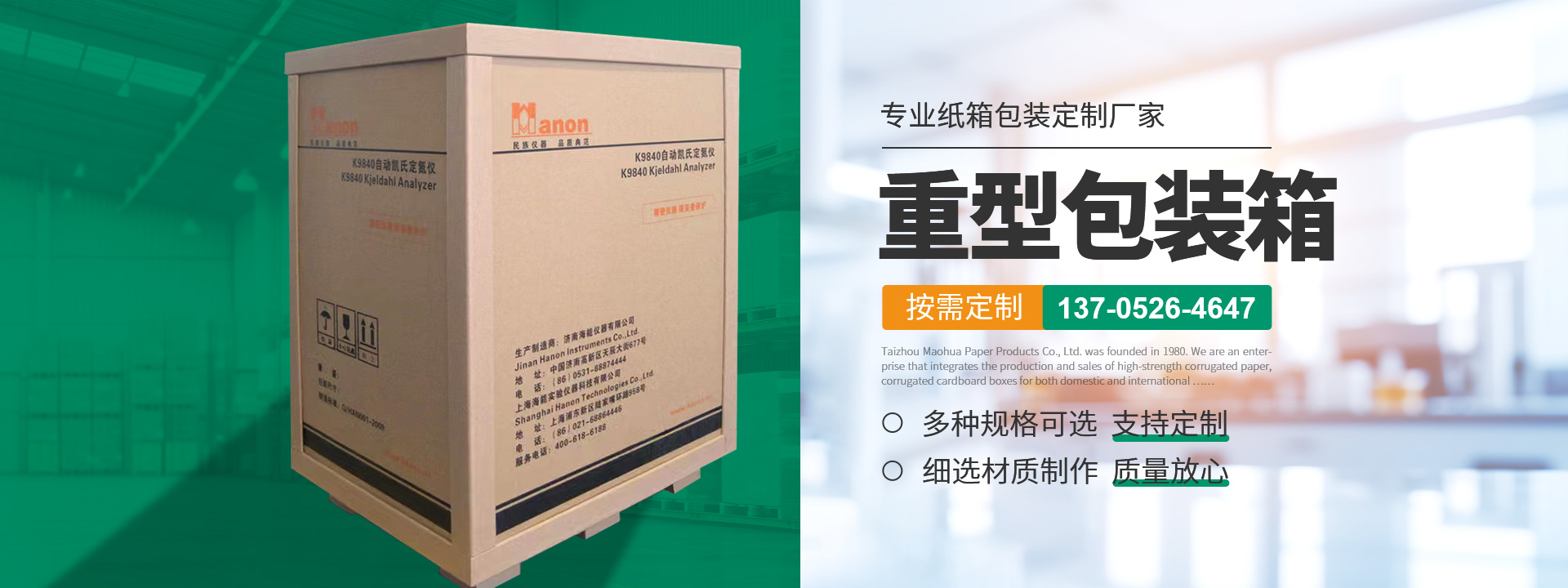 提供設計-生產-運輸,一體化重型紙箱包裝解決方案